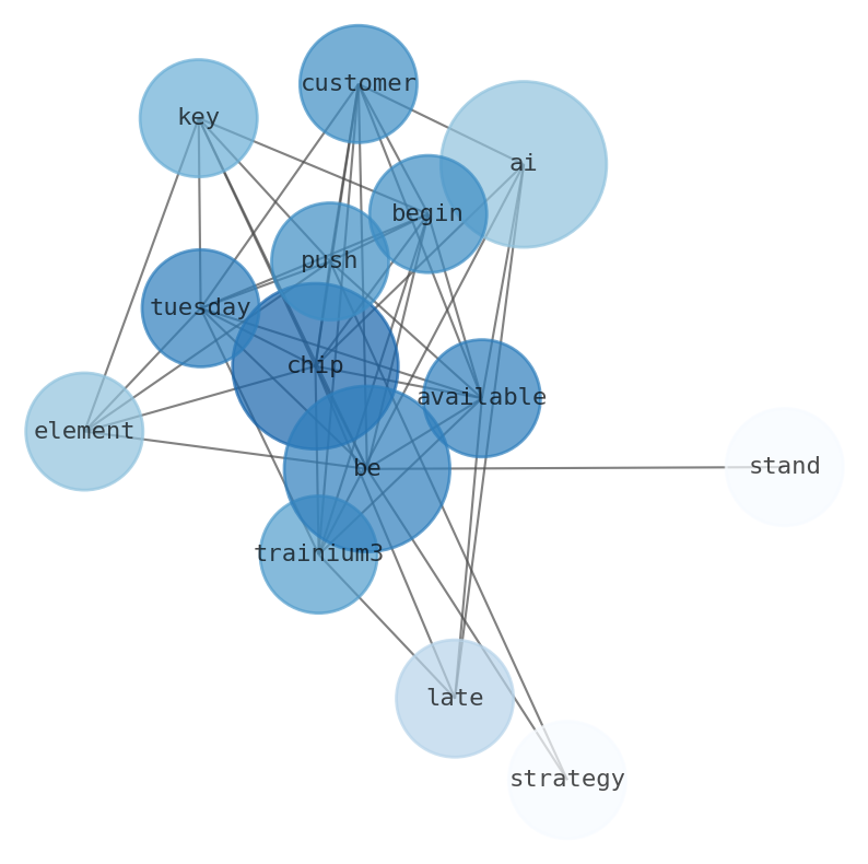 This document will help you to evaluate Amazon without reading an infinite amount of sources. Relying only on stock quotes or prices to make investment decisions is a mistake. Analyzing and observing stock charts, highs and lows and other numerical data does not allow to evaluate the real value of a company. Stock quotes and prices are the result of underlying characteristics of a company and of events and news happening around them. For this reason, investing must be based on information, not numbers. As a solution, we programmed an artificial intelligence that reads the whole internet and the uses natural language processing and vectorizers to summarize the information. Usually, the AI reads several hundred pages and summarize it to a short document. This document presents our results. We found that the most common words in the internet about Amazon are: Amazons, AI, chip, late, Trainium3, available, customer, and the …