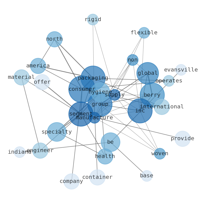 Berry Global Group, Inc. manufactures and supplies non-woven, flexible, and rigid products in consumer and industrial end markets. The company operates through Consumer Packaging International; Consumer Packaging North America; Engineered Materials; and Health, Hygiene & Specialties segments. The Consumer Packaging International segment offers closures and dispensing systems, pharmaceutical devices and packaging, bottles and canisters, containers, and technical components. The Consumer Packaging North America segment provides containers and pails, foodservice products, closures and overcaps, bottles and prescription vials, and tubes. The Engineered Materials segment offers stretch and shrink, converter, food and consumer, and agriculture films, as well as institutional can liners and retail bags. The Health, Hygiene & Specialties segment provides healthcare, hygiene, specialties, and tapes. Berry Global Group, Inc. sells its products through direct sales force of professionals and distributors in the United States, Canada, Europe, and internationally. The company was formerly known as Berry Plastics Group, Inc. and changed its name to Berry Global Group, Inc. in April 2017. Berry Global Group, Inc. was founded in 1967 and is based in Evansville, Indiana.