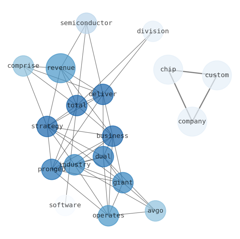 AVGO Broadcom operates as the industry giant with a dual-pronged business strategy. Broadcom delivered total revenues of $63.9 billion, comprising $36.9 billion from its semiconductor division and $27 billion from software services. the artificial intelligence segment represents Broadcoms fastest-growing revenue stream.Broadcom translates custom chips into manufacturable silicon. the company makes custom chips for tech companies. analysts say it may be approaching peak Broadcoms stock closed at $406.54 last week.