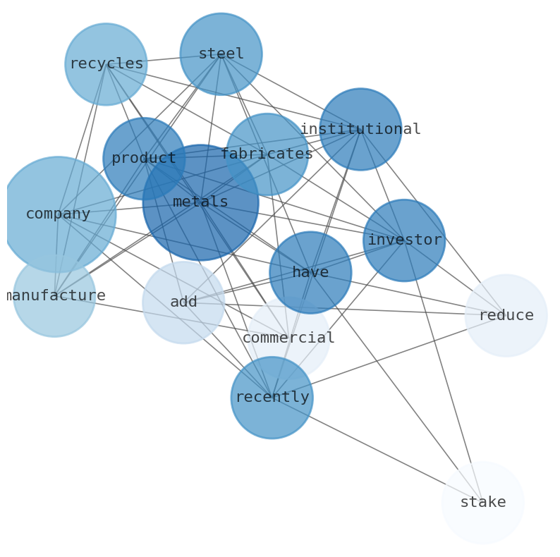 Are looking for the most relevant information about Commercial Metals Company? Investor spend a lot of time searching for information to make investment decisions in Commercial Metals Company. This task is often burdensome and consumes huge amounts of free time. It also leads to mistakes due to fatigue and bounded rationality. As a solution, we programmed an artificial intelligence that reads the whole internet and the uses natural language processing and vectorizers to summarize the information. Usually, the AI reads several hundred pages and summarize it to a short document. This document presents our results. We found that the most common words in the internet about Commercial Metals Company are: Commercial, Metals, Company, manufacture, recycles, fabricates, steel, and the most common words in the summary are: metal, commercial, company, stock, news, market, price, . One of the sentences in the summary was: Institutional investors have recently added to or reduced …