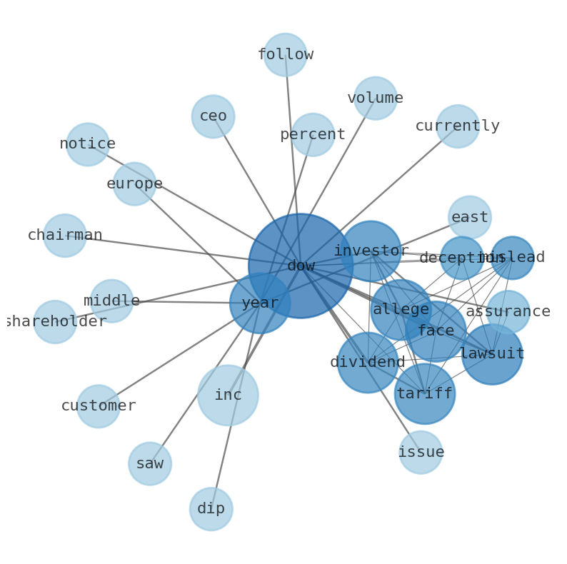 Are looking for the most relevant information about Dow Inc.? Investor spend a lot of time searching for information to make investment decisions in Dow Inc.. This task is often burdensome and consumes huge amounts of free time. It also leads to mistakes due to fatigue and bounded rationality. As a solution, we programmed an artificial intelligence that reads the whole internet and the uses natural language processing and vectorizers to summarize the information. Usually, the AI reads several hundred pages and summarize it to a short document. This document presents our results. We found that the most common words in the internet about Dow Inc. are: Dow, investor, lawsuit, allege, tariff, dividend, face, and the most common words in the summary are: dow, inc, stock, dividend, share, investor, market, . One of the sentences in the summary was: Dow investor lawsuits allege it misled on tariffs, dividend. Other searches related to this term that the AI found were: stockmarketlive, livestock, stockmarketforbeginners, thestockmarket, stockmarkettoday, stockmarkettrading, stockmarketstocks, todaystockmarket, thestockmarket, marketnews, stockmarketnews, whatisstockmarket, usstockmarket, stockmarketopen. #dow #inc #stock #dividend #share #investor #market.