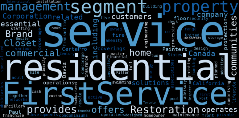FirstService Corporation, together with its subsidiaries, provides residential property management and other essential property services to residential and commercial customers in the United States and Canada. The company operates in two segments, FirstService Residential and FirstService Brands. The FirstService Residential segment offers property management services for private residential communities, such as condominiums, co-operatives, homeowner associations, master-planned communities, active adult and lifestyle communities, and various other residential developments. This segment also provides a range of ancillary services, including on-site staffing for building engineering and maintenance, full-service swimming pool and amenity management, and security and concierge/front desk; and financial services comprising cash management, other banking transaction-related, and specialized property insurance brokerage. In addition, this segment offers energy management solutions and advisory services, and resale processing services. The FirstService Brands segment operates and provides essential property services to residential and commercial customers through five franchise networks; and company-owned operations, including 21 California Closets, 14 Paul Davis Restoration, and 1 CertaPro Painters operations. It provides residential and commercial restoration, painting, and floor coverings design and installation services; custom-designed and installed closet, and home storage solutions; home inspection services; and fire protection and related services. This segment offers its services primarily under the Paul Davis Restoration, First Onsite Restoration, Century Fire Protection, CertaPro Painters, California Closets, Pillar to Post Home Inspectors, and Floor Coverings International brand names. FirstService Corporation was founded in 1989 and is headquartered in Toronto, Canada.