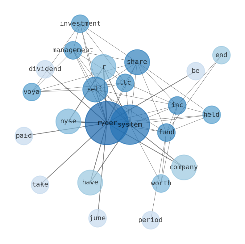 Are looking for the most relevant information about Ryder System? Investor spend a lot of time searching for information to make investment decisions in Ryder System. This task is often burdensome and consumes huge amounts of free time. It also leads to mistakes due to fatigue and bounded rationality. As a solution, we programmed an artificial intelligence that reads the whole internet and the uses natural language processing and vectorizers to summarize the information. Usually, the AI reads several hundred pages and summarize it to a short document. This document presents our results. We found that the most common words in the internet about Ryder System are: Ryder, System, sell, share, company, announce, Voya, and the most common words in the summary are: ryder, system, share, cup, r, management, inc, . One of the sentences in the summary was: Voya Investment Management LLC sold off 3,444 shares of Ryder System.. …