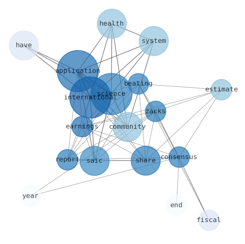 This document will help you to evaluate Science Applications International without reading an infinite amount of sources. Relying only on stock quotes or prices to make investment decisions is a mistake. Analyzing and observing stock charts, highs and lows and other numerical data does not allow to evaluate the real value of a company. Stock quotes and prices are the result of underlying characteristics of a company and of events and news happening around them. For this reason, investing must be based on information, not numbers. As a solution, we programmed an artificial intelligence that reads the whole internet and the uses natural language processing and vectorizers to summarize the information. Usually, the AI reads several hundred pages and summarize it to a short document. This document presents our results. We found that the most common words in the internet about Science Applications International are: Science, Applications, International, SAIC, share, Community, Health, and the most common words in the summary are: job, science, saic, news, application, international, august, . One of the sentences in the summary was: In the fiscal year ending February 3, 2023, Science Applications. Other searches related to this term that the AI found were: stockmarketlive, livestock, stockmarketforbeginners, thestockmarket, stockmarkettoday, stockmarkettrading, stockmarketstocks, todaystockmarket, thestockmarket, marketnews, stockmarketnews, whatisstockmarket, usstockmarket, stockmarketopen. #job #science #saic #news #application #international #august.