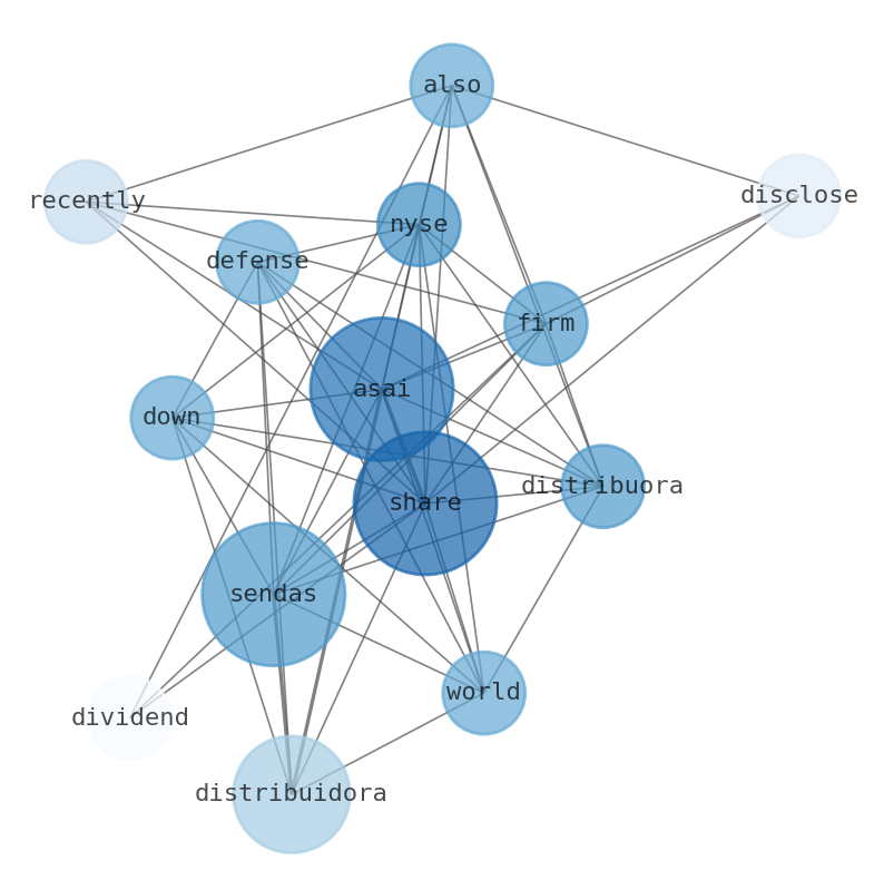 The game is changing. There is a new strategy to evaluate Sendas Distribuidora fundamental value, possible risks and most salient advantages. Investors have traditionally relied in reading large amounts of text to evaluate the fundamental value of a stock or company. However, the development of Artificial Intelligence (AI) tools is modifying the way investments are evaluated in markets. Today, machine learning, natural language processing and bigdata allow making this process automatic, reducing large amounts of text to the elements that have a higher activation in a neural network. We programmed an artificial intelligence that reads the whole internet and the uses natural language processing and vectorizers to summarize the information. Usually, the AI reads several hundred pages and summarize it to a short document. This document presents our results. We found that the most common words in the internet about Sendas Distribuidora are: SA, share, Sendas, Distribuidora, ASAI, defense, world, …