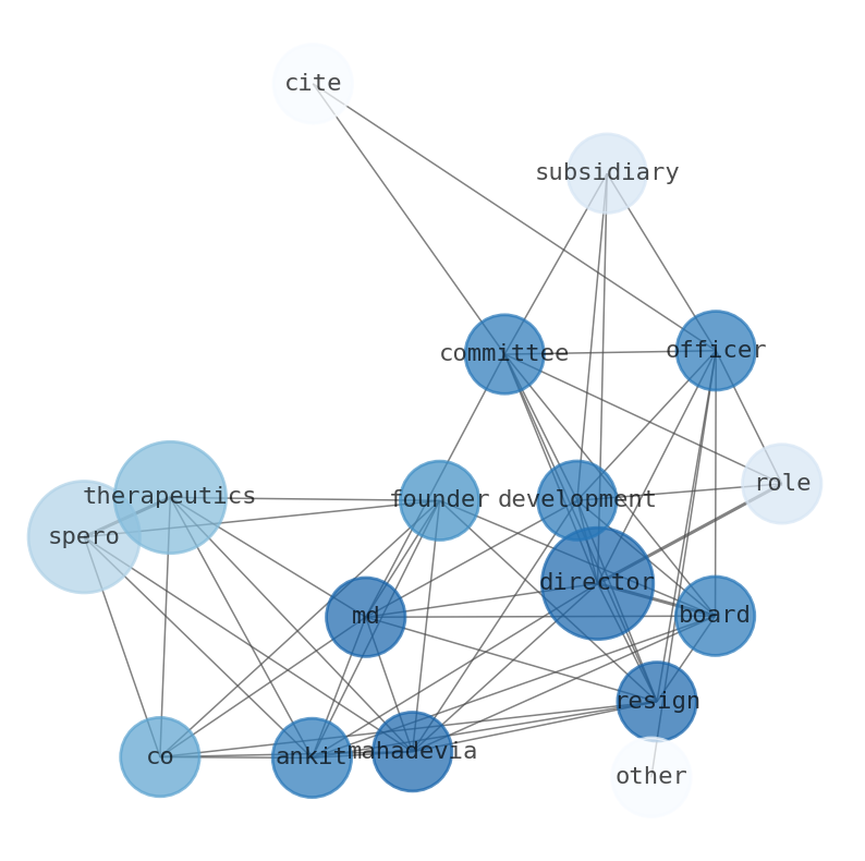 Spero Therapeutics co-founder Ankit Mahadevia, MD resigned from its Board of Directors, its Development Committee, and all officer and director roles at its subsidiaries, citing other professional commitments. The company expressed gratitude for his service since inception. Spero Therapeutics is a clinical-stage biopharmaceutical company focused on identifying and developing novel treatments for rare diseases and MDR bacterial infections with high unmet need.