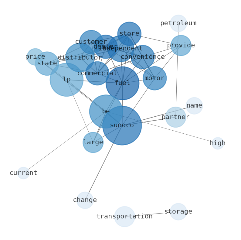 Are looking for the most relevant information about Sunoco LP? Investor spend a lot of time searching for information to make investment decisions in Sunoco LP. This task is often burdensome and consumes huge amounts of free time. It also leads to mistakes due to fatigue and bounded rationality. As a solution, we programmed an artificial intelligence that reads the whole internet and the uses natural language processing and vectorizers to summarize the information. Usually, the AI reads several hundred pages and summarize it to a short document. This document presents our results. We found that the most common words in the internet about Sunoco LP are: Sunoco, fuel, LP, distributor, independent, motor, convenience, and the most common words in the summary are: sunoco, lp, stock, fuel, energy, market, new, . One of the sentences in the summary was: providing motor fuel to convenience stores, independent dealers, commercial customers and …