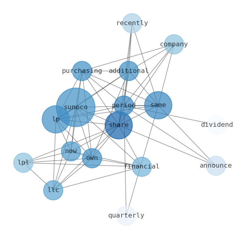 Are looking for the most relevant information about Sunoco LP? Investor spend a lot of time searching for information to make investment decisions in Sunoco LP. This task is often burdensome and consumes huge amounts of free time. It also leads to mistakes due to fatigue and bounded rationality. As a solution, we programmed an artificial intelligence that reads the whole internet and the uses natural language processing and vectorizers to summarize the information. Usually, the AI reads several hundred pages and summarize it to a short document. This document presents our results. We found that the most common words in the internet about Sunoco LP are: Sunoco, share, LP, LPL, Financial, LLC, own, and the most common words in the summary are: objbsf, active, inc, llc, oil, fuel, gas, . One of the sentences in the summary was: LPL Financial LLC now owns 143,552 shares of Sunoco LP, after …