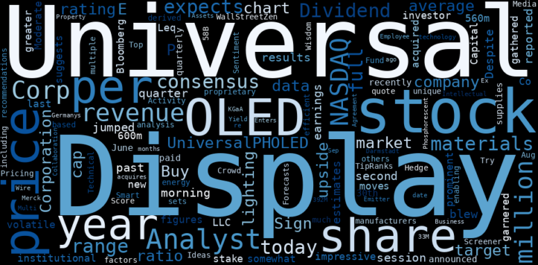 Universal Display Corporation engages in the research, development, and commercialization of organic light emitting diode (OLED) technologies and materials for use in display and solid-state lighting applications. The company offers PHOLED technologies and materials for displays and lighting products under the UniversalPHOLED brand. It is also involved in the research, development, and commercialization of other OLED device and manufacturing technologies, including FOLED that are flexible OLEDs for the fabrication of OLEDs on flexible substrates; and OVJP, an organic vapor jet printing technology. In addition, the company provides technology development and support services, including third-party collaboration and support to third parties for the commercialization of their OLED products; and contract research services in the areas of chemical materials synthesis research, development, and commercialization for non-OLED applications, as well as engages in the intellectual property and technology licensing activities. Universal Display Corporation was incorporated in 1985 and is headquartered in Ewing, New Jersey.