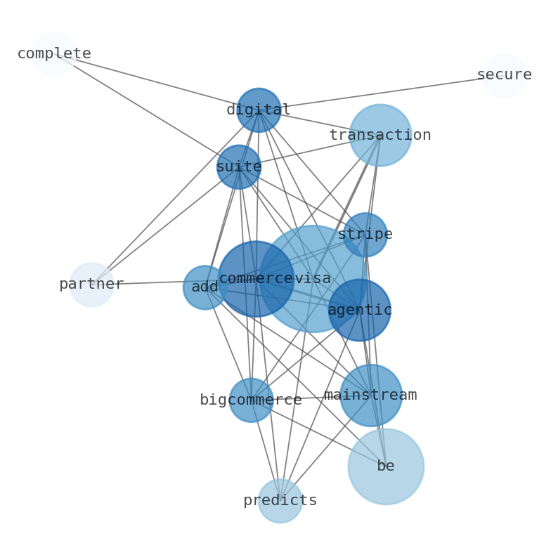 Visa predicts agentic commerce will be mainstream in 2026; bigcommerce adds stripe’s agentic. commerce suite – digital transactions. Visa and partners complete secure ai transactions, setting the stage for mainstream adoption in 20 26. Visa stock was up 0.34% at $349.02 during premarket trading on Friday. Analyst Mihir Bhatia upgraded Visa from neutral to buy and announced a price target of $382. Visa research indicates that nearly half “f U.S. Ramp is applying Visa Intelligent Commerce to its automation platform for B2B payments.