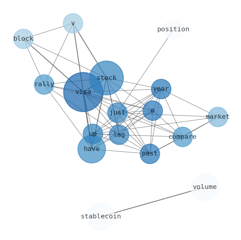 Block vs Visa: Which Stock Could Rally? Visa stock has lagged the S&P 500 in the past year, up just over 7%, compared to the markets 20%. Visa is positioning itself as the cashiers cage. Management knows this stock is cheap by two key measures. Visa has argued stablecoin transfer volumes contain “noise” BlackRock noted stablecoin transaction volume is adjusted to “strip out inorganic activity (e.g., bots),” citing Coin Metrics.