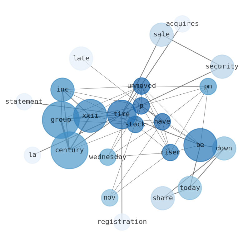 The development of Artificial Intelligence (AI) is modifying the way investments are evaluated. We programmed an artificial intelligence (A.I.) to summarize the whole internet. Whether you’re trying to make money investing online, making financial decisions or just getting informed about Wall Street, this page is a way to get informed without reading hundred of pages. Our stock market summary graphs are produced using machine learning, an unbiased view to capture what internet is saying. Usually, the AI reads several hundred pages and summarize it to a short text and several charts.