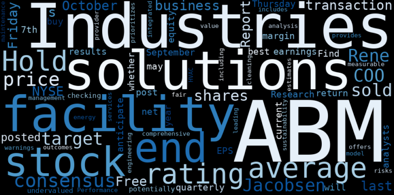 How much time have you spent trying to decide whether investing in ABM Industries? Many investors start with the dream of being free. They expect to find on the stock market an option to have time to develop their own interests and hobbies. That is, a way to escape a 9 to 5 job. However, investment is complex and investors end up spending whole days (and nights) trying to figure out which the right stock to invest is. The dream of stock investing becomes the nightmare of facing infinity amounts of information. As a solution, we programmed an artificial intelligence that reads the whole internet and the uses natural language processing and vectorizers to summarize the information. Usually, the AI reads several hundred pages and summarize it to a short document. This document presents our results. We found that the most common words in the internet about ABM Industries are: …