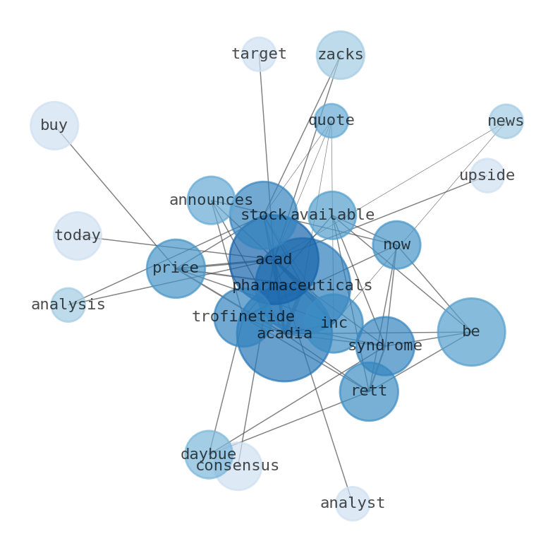 This document will help you to evaluate ACADIA Pharmaceuticals without reading an infinite amount of sources. Relying only on stock quotes or prices to make investment decisions is a mistake. Analyzing and observing stock charts, highs and lows and other numerical data does not allow to evaluate the real value of a company. Stock quotes and prices are the result of underlying characteristics of a company and of events and news happening around them. For this reason, investing must be based on information, not numbers. As a solution, we programmed an artificial intelligence that reads the whole internet and the uses natural language processing and vectorizers to summarize the information. Usually, the AI reads several hundred pages and summarize it to a short document. This document presents our results. We found that the most common words in the internet about ACADIA Pharmaceuticals are: Acadia, Pharmaceuticals, ACAD, Rett, Inc, stock, pharmaceutical, and the most common words in the summary are: acadia, pharmaceutical, stock, acad, inc, market, rett, . One of the sentences in the summary was: Acadia pharmaceuticals (acad) worth $3.3 bil (down $0), more valuable than first republic bank. Other searches related to this term that the AI found were: stockmarketlive, livestock, stockmarketforbeginners, thestockmarket, stockmarkettoday, stockmarkettrading, stockmarketstocks, todaystockmarket, thestockmarket, marketnews, stockmarketnews, whatisstockmarket, usstockmarket, stockmarketopen. #acadia #pharmaceutical #stock #acad #inc #market #rett.