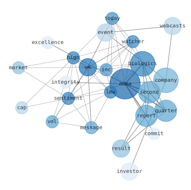 This document will help you to evaluate ADMA Biologics without reading an infinite amount of sources. Relying only on stock quotes or prices to make investment decisions is a mistake. Analyzing and observing stock charts, highs and lows and other numerical data does not allow to evaluate the real value of a company. Stock quotes and prices are the result of underlying characteristics of a company and of events and news happening around them. For this reason, investing must be based on information, not numbers. As a solution, we programmed an artificial intelligence that reads the whole internet and the uses natural language processing and vectorizers to summarize the information. Usually, the AI reads several hundred pages and summarize it to a short document. This document presents our results. We found that the most common words in the internet about ADMA Biologics are: ADMA, Biologics, report, company, second, quarter, result, …