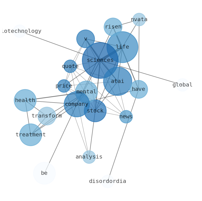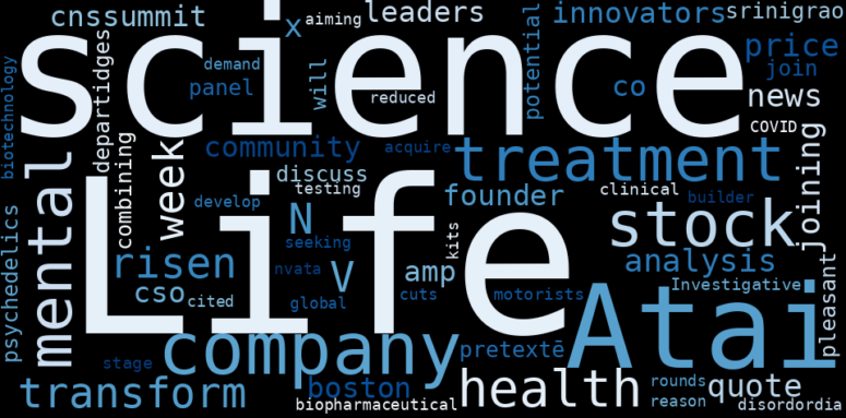This document will help you to evaluate ATAI Life Sciences without reading an infinite amount of sources. Relying only on stock quotes or prices to make investment decisions is a mistake. Analyzing and observing stock charts, highs and lows and other numerical data does not allow to evaluate the real value of a company. Stock quotes and prices are the result of underlying characteristics of a company and of events and news happening around them. For this reason, investing must be based on information, not numbers. As a solution, we programmed an artificial intelligence that reads the whole internet and the uses natural language processing and vectorizers to summarize the information. Usually, the AI reads several hundred pages and summarize it to a short document. This document presents our results. We found that the most common words in the internet about ATAI Life Sciences are: Atai, company, Life, Sciences, stock, …