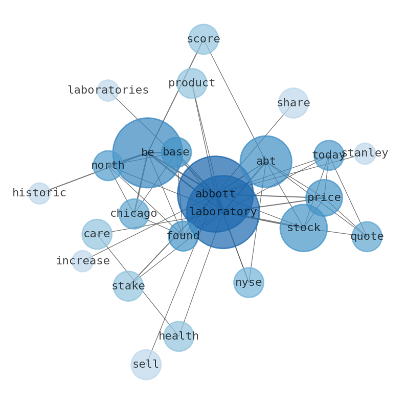 This document will help you to evaluate Abbott Laboratories without reading an infinite amount of sources. Relying only on stock quotes or prices to make investment decisions is a mistake. Analyzing and observing stock charts, highs and lows and other numerical data does not allow to evaluate the real value of a company. Stock quotes and prices are the result of underlying characteristics of a company and of events and news happening around them. For this reason, investing must be based on information, not numbers. As a solution, we programmed an artificial intelligence that reads the whole internet and the uses natural language processing and vectorizers to summarize the information. Usually, the AI reads several hundred pages and summarize it to a short document. This document presents our results. We found that the most common words in the internet about Abbott Laboratories are: Abbott, Laboratories, stock, price, ABT, market, abt, and the most common words in the summary are: abbott, stock, laboratory, market, top, price, job, . One of the sentences in the summary was: Norges Bank purchased a new stake in Abbott Laboratories in the 4th quarter worth approximately $1,893,715,000.. Other searches related to this term that the AI found were: stockmarketlive, livestock, stockmarketforbeginners, thestockmarket, stockmarkettoday, stockmarkettrading, stockmarketstocks, todaystockmarket, thestockmarket, marketnews, stockmarketnews, whatisstockmarket, usstockmarket, stockmarketopen. #abbott #stock #laboratory #market #top #price #job.