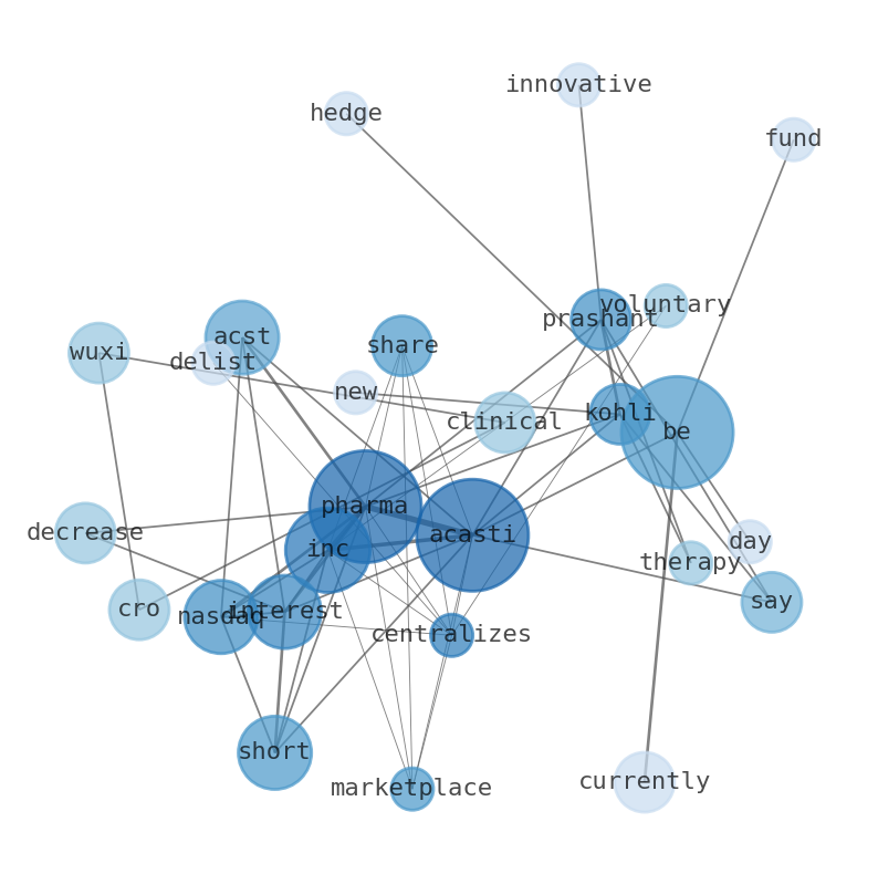 Acasti Pharma Inc. Centralizes Marketplace for Shares on the Nasdaq with Voluntary Delisting from TSX Venture Exchange. Announces Initiation of Pharmacokinetic Study for GTX-102. Short interest in Acasti Pharma Inc. decreases by 89.7% - defense world. short interest in acasti pharma inc. (nasdaq:acst) Short Interest in Acastsi Pharma. (NASDAQ:ACST) Decreases By 89. 7% Shareholders are encouraged to contact the firm. Acasti Announces WuXi Clinical as CRO to Conduct STRIVE-ON Pivotal Phase 3 Safety Trial for GTX-104 in aSAH Patients. WuXi Clinical is a leader in the CRO industry with a strong track record in successfully helping pharmaceutical companies develop innovative therapies, said Prashant Kohli. Prashant Kohli as Acasti Pharmas new Chief Executive Officer, RHEA-AI very positive. Jean-Marie (John) Canan tendered his resignation as Director. Analysts are bullish on top healthcare stocks: acasti pharma (acst), immunoprecise antibodies (ipa) and Evotec AG. H.C. Wainwright analyst Oren Livnat reiterated a Buy rating. Wall Street analysts say Acasti Pharma, Inc.s price is currently Undervalued. The companys upcoming earnings report date is Aug 16, 2023 which is in 31 days. No hedge funds are currently holding shares in DE:A1P0 --- The stock does not have enough of the key information to rate it accurately.