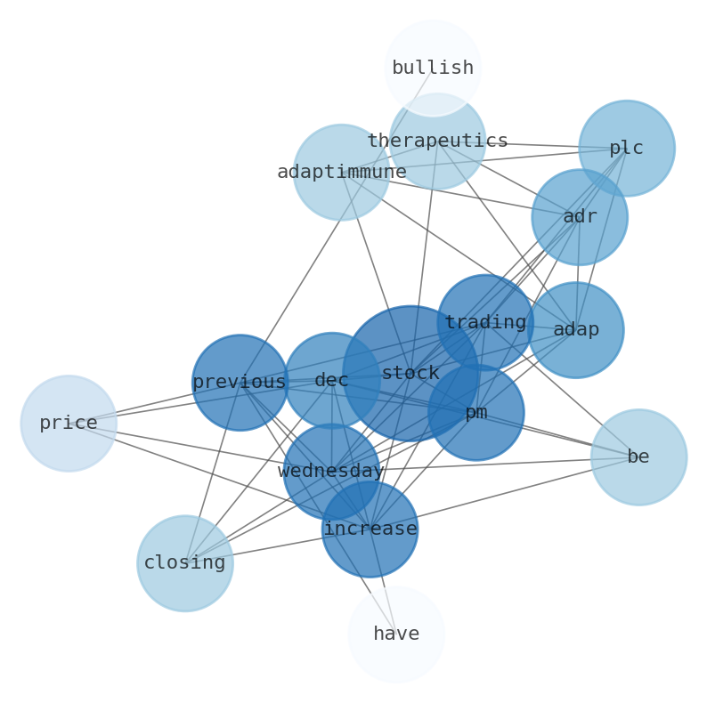 Are looking for the most relevant information about Adaptimmune Therapeutics? Investor spend a lot of time searching for information to make investment decisions in Adaptimmune Therapeutics. This task is often burdensome and consumes huge amounts of free time. It also leads to mistakes due to fatigue and bounded rationality. As a solution, we programmed an artificial intelligence that reads the whole internet and the uses natural language processing and vectorizers to summarize the information. Usually, the AI reads several hundred pages and summarize it to a short document. This document presents our results. We found that the most common words in the internet about Adaptimmune Therapeutics are: stock, Adaptimmune, Therapeutics, PLC, ADR, ADAP, trading, and the most common words in the summary are: therapeutic, inc, pharmaceutical, pharma, bioscience, biopharma, stock, . One of the sentences in the summary was: Adaptimmune Therapeutics PLC - ADR (ADAP) stock is trading at $0.69 …