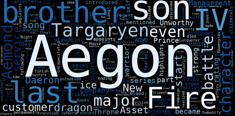 The game is changing. There is a new strategy to evaluate Aegon fundamental value, possible risks and most salient advantages. Investors have traditionally relied in reading large amounts of text to evaluate the fundamental value of a stock or company. However, the development of Artificial Intelligence (AI) tools is modifying the way investments are evaluated in markets. Today, machine learning, natural language processing and bigdata allow making this process automatic, reducing large amounts of text to the elements that have a higher activation in a neural network. We programmed an artificial intelligence that reads the whole internet and the uses natural language processing and vectorizers to summarize the information. Usually, the AI reads several hundred pages and summarize it to a short document. This document presents our results. We found that the most common words in the internet about Aegon are: Aegon, last, son, IV, brother, major, character, and the most common words in the summary are: aegon, targaryen, son, dragon, house, fire, baelon, . One of the sentences in the summary was: Aegon VI is a major viewpoint character.. Other searches related to this term that the AI found were: stockmarketlive, livestock, stockmarketforbeginners, thestockmarket, stockmarkettoday, stockmarkettrading, stockmarketstocks, todaystockmarket, thestockmarket, marketnews, stockmarketnews, whatisstockmarket, usstockmarket, stockmarketopen. #aegon #targaryen #son #dragon #house #fire #baelon.
