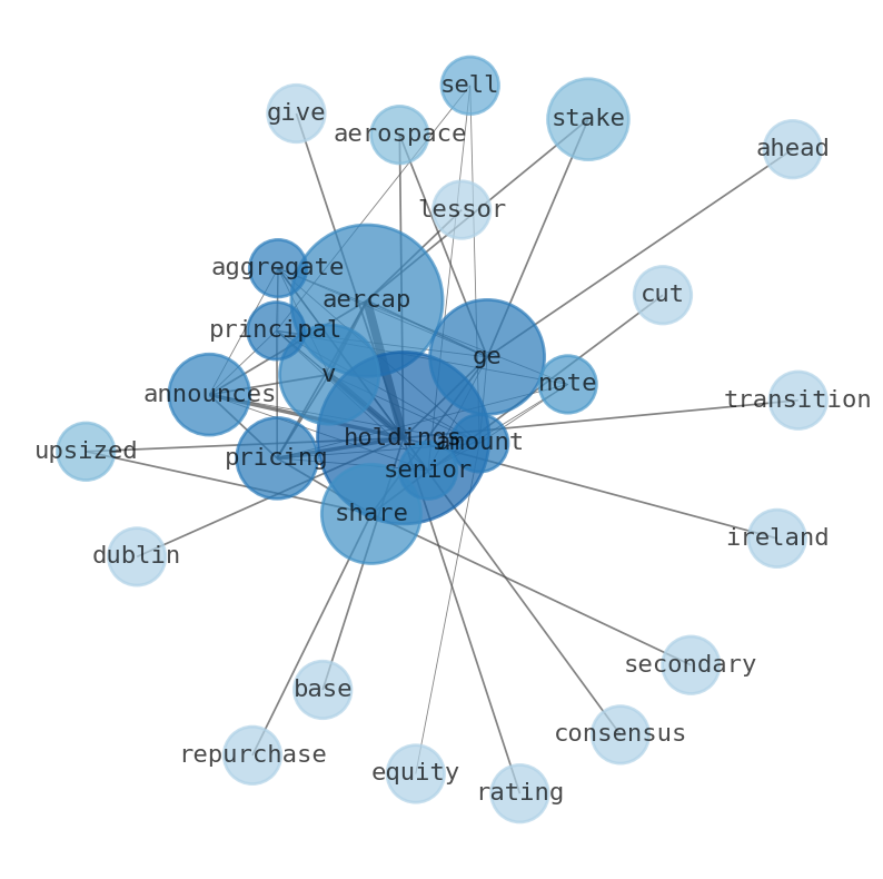 Are looking for the most relevant information about AerCap Holdings? Investor spend a lot of time searching for information to make investment decisions in AerCap Holdings. This task is often burdensome and consumes huge amounts of free time. It also leads to mistakes due to fatigue and bounded rationality. As a solution, we programmed an artificial intelligence that reads the whole internet and the uses natural language processing and vectorizers to summarize the information. Usually, the AI reads several hundred pages and summarize it to a short document. This document presents our results. We found that the most common words in the internet about AerCap Holdings are: AerCap, Holdings, GE, NV, Announces, Pricing, Share, and the most common words in the summary are: aercap, holding, price, stock, share, sell, nv, . One of the sentences in the summary was: The stock price for AerCap Holdings ( NYSE : AER ) …