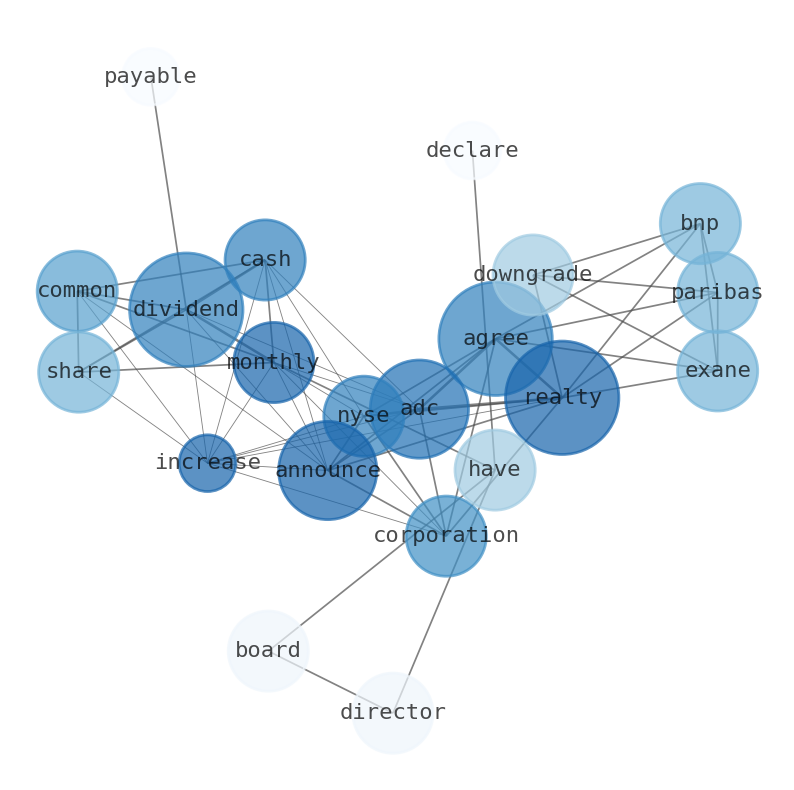 This document will help you to evaluate Agree Realty without reading an infinite amount of sources. Relying only on stock quotes or prices to make investment decisions is a mistake. Analyzing and observing stock charts, highs and lows and other numerical data does not allow to evaluate the real value of a company. Stock quotes and prices are the result of underlying characteristics of a company and of events and news happening around them. For this reason, investing must be based on information, not numbers. As a solution, we programmed an artificial intelligence that reads the whole internet and the uses natural language processing and vectorizers to summarize the information. Usually, the AI reads several hundred pages and summarize it to a short document. This document presents our results. We found that the most common words in the internet about Agree Realty are: Agree, Realty, dividend, ADC, announce, Corporation, NYSE, and the most common words in the summary are: realty, agree, job, news, dividend, real, estate, . One of the sentences in the summary was: Linglong He will join the Companys Board of Directors effective January 1, 2024. Other searches related to this term that the AI found were: stockmarketlive, livestock, stockmarketforbeginners, thestockmarket, stockmarkettoday, stockmarkettrading, stockmarketstocks, todaystockmarket, thestockmarket, marketnews, stockmarketnews, whatisstockmarket, usstockmarket, stockmarketopen. #realty #agree #job #news #dividend #real #estate.