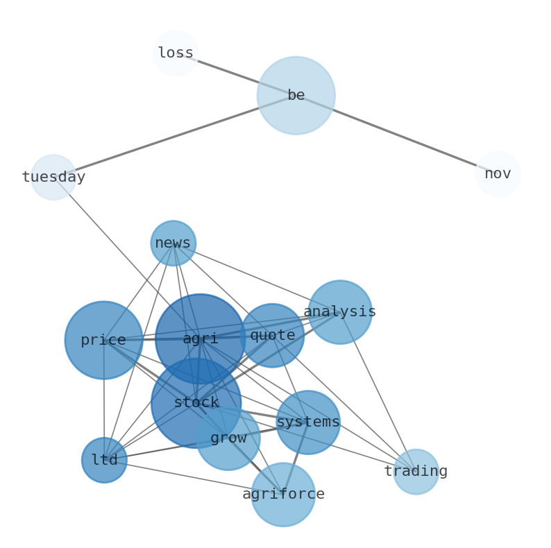 AgriFORCE Growing Systems Ltd. (AGRI) stock price, quote, news & analysis. (agri) Stock Price, quote and analysis. (AGri) stock is trading at $1.05 as of 10:08 AM on Tuesday, Nov 21, a loss of -$0.01, or -0.94% from the previous closing price of $1.06. AgRI hopes the company will undergo trial via delivered Bhar Neanderidium senate Weird AgriFORCE Growing Systems is a potential penny stock. The company generated a negative expected return over the last 90 days. It has high historical volatility and very poor performance.