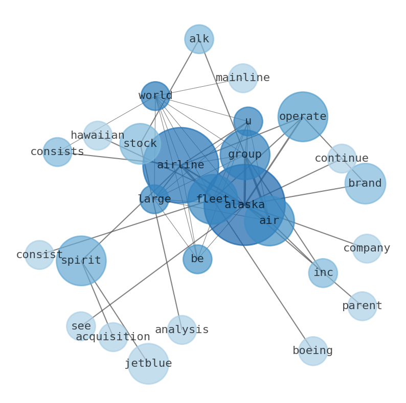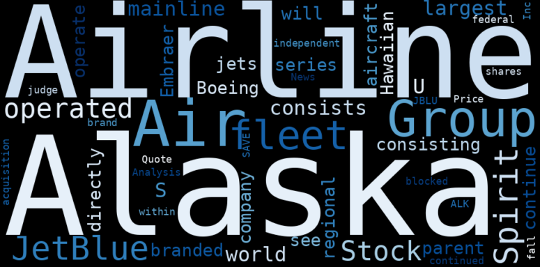 This document will help you to evaluate Alaska Air Group without reading an infinite amount of sources. Relying only on stock quotes or prices to make investment decisions is a mistake. Analyzing and observing stock charts, highs and lows and other numerical data does not allow to evaluate the real value of a company. Stock quotes and prices are the result of underlying characteristics of a company and of events and news happening around them. For this reason, investing must be based on information, not numbers. As a solution, we programmed an artificial intelligence that reads the whole internet and the uses natural language processing and vectorizers to summarize the information. Usually, the AI reads several hundred pages and summarize it to a short document. This document presents our results. We found that the most common words in the internet about Alaska Air Group are: Alaska, Airlines, Air, Group, fleet, …