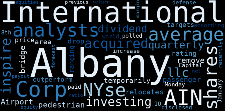 The game is changing. There is a new strategy to evaluate Albany International fundamental value, possible risks and most salient advantages. Investors have traditionally relied in reading large amounts of text to evaluate the fundamental value of a stock or company. However, the development of Artificial Intelligence (AI) tools is modifying the way investments are evaluated in markets. Today, machine learning, natural language processing and bigdata allow making this process automatic, reducing large amounts of text to the elements that have a higher activation in a neural network. We programmed an artificial intelligence that reads the whole internet and the uses natural language processing and vectorizers to summarize the information. Usually, the AI reads several hundred pages and summarize it to a short document. This document presents our results. We found that the most common words in the internet about Albany International are: Albany, International, Corp, average, analyst, quarterly, dividend, …