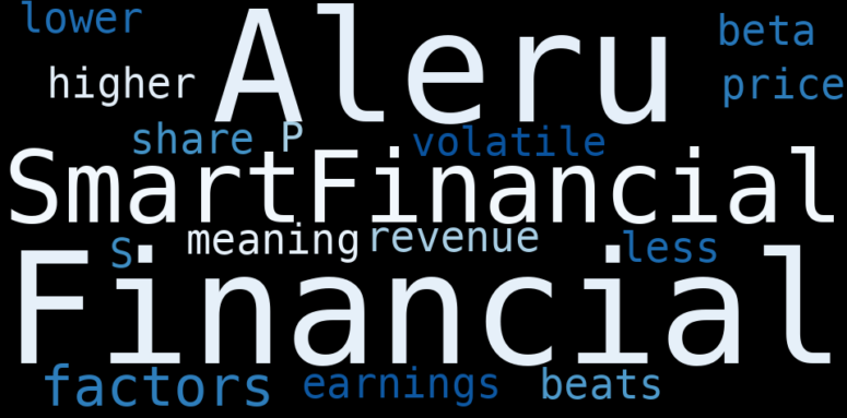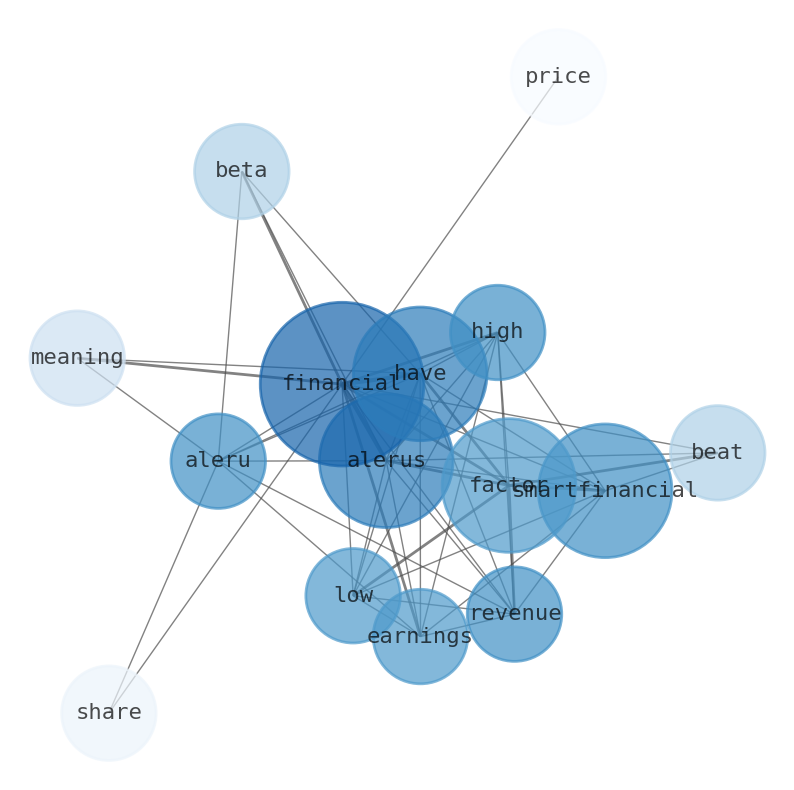 The game is changing. There is a new strategy to evaluate Alerus Financial fundamental value, possible risks and most salient advantages. Investors have traditionally relied in reading large amounts of text to evaluate the fundamental value of a stock or company. However, the development of Artificial Intelligence (AI) tools is modifying the way investments are evaluated in markets. Today, machine learning, natural language processing and bigdata allow making this process automatic, reducing large amounts of text to the elements that have a higher activation in a neural network. We programmed an artificial intelligence that reads the whole internet and the uses natural language processing and vectorizers to summarize the information. Usually, the AI reads several hundred pages and summarize it to a short document. This document presents our results. We found that the most common words in the internet about Alerus Financial are: Financial, SmartFinancial, factor, beat, Alerus, low, revenue, and the most common words in the summary are: bank, credit, union, federal, first, financial, state, . One of the sentences in the summary was: SmartFinancial beats Alerus Financial on 13 of the 18 factors factors. Other searches related to this term that the AI found were: stockmarketlive, livestock, stockmarketforbeginners, thestockmarket, stockmarkettoday, stockmarkettrading, stockmarketstocks, todaystockmarket, thestockmarket, marketnews, stockmarketnews, whatisstockmarket, usstockmarket, stockmarketopen. #bank #credit #union #federal #first #financial #state.