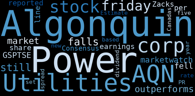 Are looking for the most relevant information about Algonquin Power & Utilities? Investor spend a lot of time searching for information to make investment decisions in Algonquin Power & Utilities. This task is often burdensome and consumes huge amounts of free time. It also leads to mistakes due to fatigue and bounded rationality. As a solution, we programmed an artificial intelligence that reads the whole internet and the uses natural language processing and vectorizers to summarize the information. Usually, the AI reads several hundred pages and summarize it to a short document. This document presents our results. We found that the most common words in the internet about Algonquin Power & Utilities are: Algonquin, stock, friday, Power, Utilities, power, utility, and the most common words in the summary are: stock, power, market, algonquin, utility, news, energy, . One of the sentences in the summary was: stock falls friday, still outperforms …