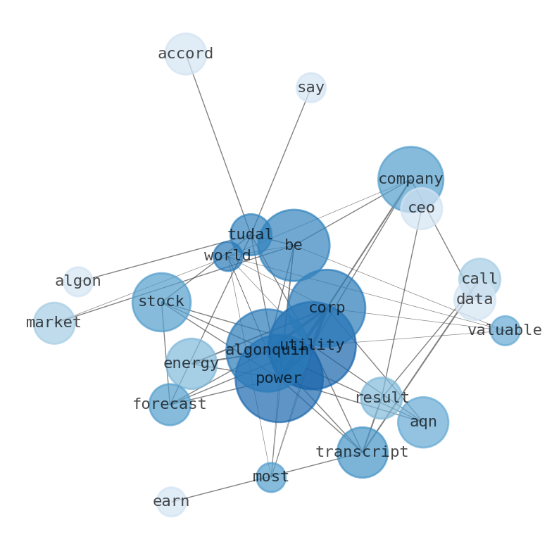 This document will help you to evaluate Algonquin Power & Utilities without reading an infinite amount of sources. Relying only on stock quotes or prices to make investment decisions is a mistake. Analyzing and observing stock charts, highs and lows and other numerical data does not allow to evaluate the real value of a company. Stock quotes and prices are the result of underlying characteristics of a company and of events and news happening around them. For this reason, investing must be based on information, not numbers. As a solution, we programmed an artificial intelligence that reads the whole internet and the uses natural language processing and vectorizers to summarize the information. Usually, the AI reads several hundred pages and summarize it to a short document. This document presents our results. We found that the most common words in the internet about Algonquin Power & Utilities are: Power, Algonquin, Utilities, Corp, company, stock, energy, and the most common words in the summary are: algonquin, utility, power, stock, corp, job, back, . One of the sentences in the summary was: Algon. Other searches related to this term that the AI found were: stockmarketlive, livestock, stockmarketforbeginners, thestockmarket, stockmarkettoday, stockmarkettrading, stockmarketstocks, todaystockmarket, thestockmarket, marketnews, stockmarketnews, whatisstockmarket, usstockmarket, stockmarketopen. #algonquin #utility #power #stock #corp #job #back.