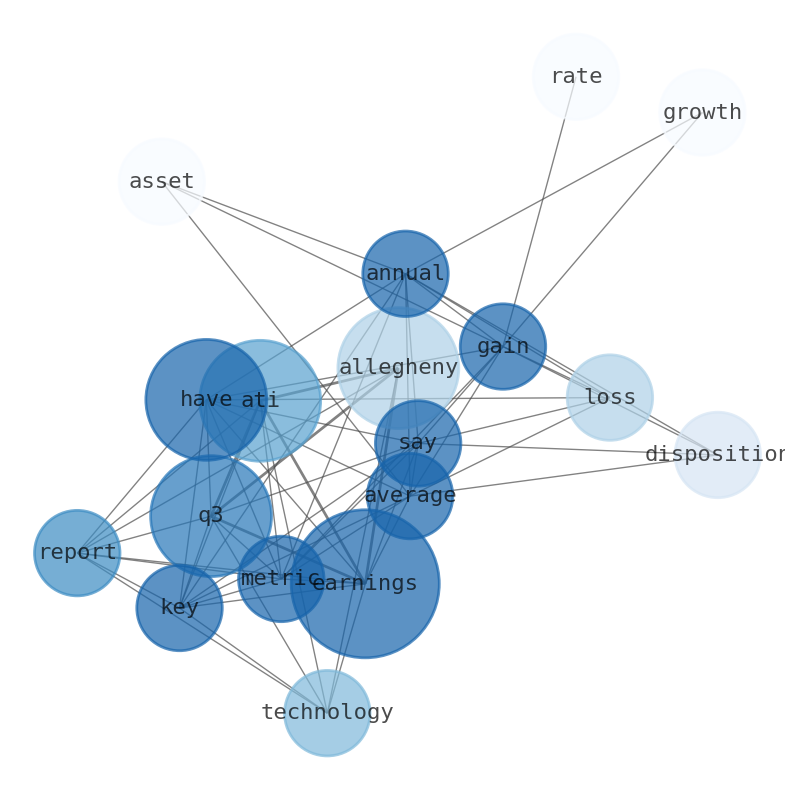 The game is changing. There is a new strategy to evaluate Allegheny Technologies fundamental value, possible risks and most salient advantages. Investors have traditionally relied in reading large amounts of text to evaluate the fundamental value of a stock or company. However, the development of Artificial Intelligence (AI) tools is modifying the way investments are evaluated in markets. Today, machine learning, natural language processing and bigdata allow making this process automatic, reducing large amounts of text to the elements that have a higher activation in a neural network. We programmed an artificial intelligence that reads the whole internet and the uses natural language processing and vectorizers to summarize the information. Usually, the AI reads several hundred pages and summarize it to a short document. This document presents our results. We found that the most common words in the internet about Allegheny Technologies are: Allegheny, Q3, Earnings, Technologies, ATI, report, Key, …