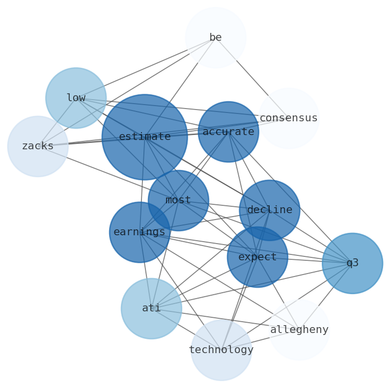 The game is changing. There is a new strategy to evaluate Allegheny Technologies fundamental value, possible risks and most salient advantages. Investors have traditionally relied in reading large amounts of text to evaluate the fundamental value of a stock or company. However, the development of Artificial Intelligence (AI) tools is modifying the way investments are evaluated in markets. Today, machine learning, natural language processing and bigdata allow making this process automatic, reducing large amounts of text to the elements that have a higher activation in a neural network. We programmed an artificial intelligence that reads the whole internet and the uses natural language processing and vectorizers to summarize the information. Usually, the AI reads several hundred pages and summarize it to a short document. This document presents our results. We found that the most common words in the internet about Allegheny Technologies are: Estimate, Allegheny, Technologies, ATI, Q3, Earnings, Expected, …