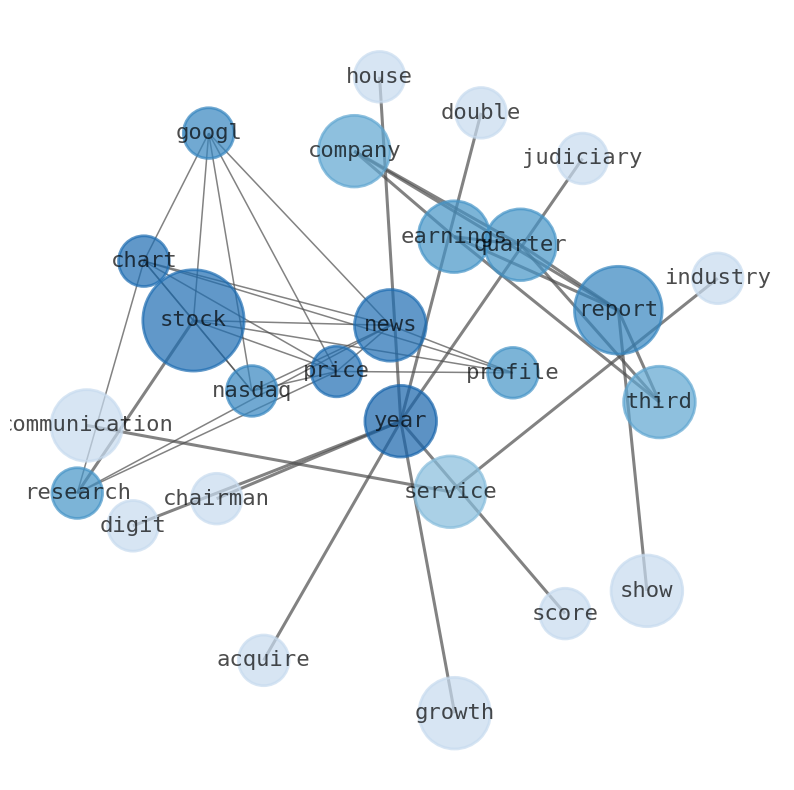 Are looking for the most relevant information about Alphabet? Investor spend a lot of time searching for information to make investment decisions in Alphabet. This task is often burdensome and consumes huge amounts of free time. It also leads to mistakes due to fatigue and bounded rationality. As a solution, we programmed an artificial intelligence that reads the whole internet and the uses natural language processing and vectorizers to summarize the information. Usually, the AI reads several hundred pages and summarize it to a short document. This document presents our results. We found that the most common words in the internet about Alphabet are: Alphabet, stock, report, Services, earnings, company, show, and the most common words in the summary are: alphabet, stock, best, news, googl, market, inc, . One of the sentences in the summary was: House Judiciary Chairman Jim Jordan subpoenaed the chief executive officers of Alphabet.. Other searches …