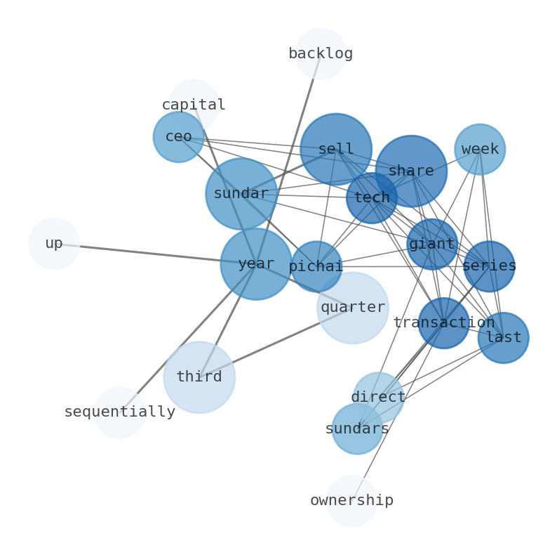 Alphabet CEO Sundar Pichai sold around 30,521 shares in tech giant in a series of transactions last week. Sundars direct ownership of Google parent Alphabet fell to 2,211,872 shares. This is not the first time Sundar has sold stake in Alphabet. Google Cloud ended the third quarter with $155 billion in backlog (up 46% sequentially and 82% year over year) Alphabets third-quarter capital expenditures were about $24.0 billion.
