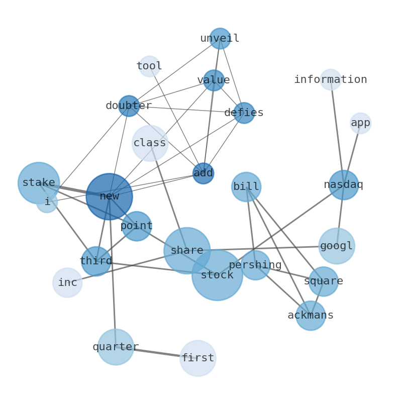 Are looking for the most relevant information about Alphabet? Investor spend a lot of time searching for information to make investment decisions in Alphabet. This task is often burdensome and consumes huge amounts of free time. It also leads to mistakes due to fatigue and bounded rationality. As a solution, we programmed an artificial intelligence that reads the whole internet and the uses natural language processing and vectorizers to summarize the information. Usually, the AI reads several hundred pages and summarize it to a short document. This document presents our results. We found that the most common words in the internet about Alphabet are: Alphabet, stock, new, share, stake, first, quarter, and the most common words in the summary are: alphabet, stock, inc, class, best, share, goog, . One of the sentences in the summary was: Bill Ackmans Pershing Square Capital Management LP also revealed a new Alphabet stake in …