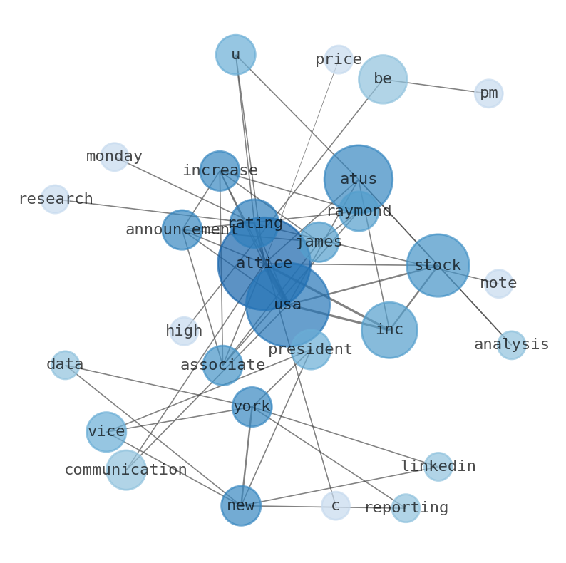 This document will help you to evaluate Altice USA without reading an infinite amount of sources. Relying only on stock quotes or prices to make investment decisions is a mistake. Analyzing and observing stock charts, highs and lows and other numerical data does not allow to evaluate the real value of a company. Stock quotes and prices are the result of underlying characteristics of a company and of events and news happening around them. For this reason, investing must be based on information, not numbers. As a solution, we programmed an artificial intelligence that reads the whole internet and the uses natural language processing and vectorizers to summarize the information. Usually, the AI reads several hundred pages and summarize it to a short document. This document presents our results. We found that the most common words in the internet about Altice USA are: Altice, USA, stock, Inc, ATUS, rating, US, and the most common words in the summary are: altice, usa, stock, job, inc, atus, new, . One of the sentences in the summary was: Bank of America Securities analyst Jessica Reif Cohen reiterated a Sell rating. Other searches related to this term that the AI found were: stockmarketlive, livestock, stockmarketforbeginners, thestockmarket, stockmarkettoday, stockmarkettrading, stockmarketstocks, todaystockmarket, thestockmarket, marketnews, stockmarketnews, whatisstockmarket, usstockmarket, stockmarketopen. #altice #usa #stock #job #inc #atus #new.