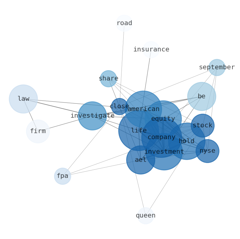 Are looking for the most relevant information about American Equity Investment Life Holding Company? Investor spend a lot of time searching for information to make investment decisions in American Equity Investment Life Holding Company. This task is often burdensome and consumes huge amounts of free time. It also leads to mistakes due to fatigue and bounded rationality. As a solution, we programmed an artificial intelligence that reads the whole internet and the uses natural language processing and vectorizers to summarize the information. Usually, the AI reads several hundred pages and summarize it to a short document. This document presents our results. We found that the most common words in the internet about American Equity Investment Life Holding Company are: American, Equity, Life, Holding, Investment, Company, investigate, and the most common words in the summary are: life, investment, company, equity, american, stock, hold, . One of the sentences in the summary was: Halper Sadeh LLC, an investor rights law firm, is investigating the following companies for potential violations of the federal securities laws. Other searches related to this term that the AI found were: stockmarketlive, livestock, stockmarketforbeginners, thestockmarket, stockmarkettoday, stockmarkettrading, stockmarketstocks, todaystockmarket, thestockmarket, marketnews, stockmarketnews, whatisstockmarket, usstockmarket, stockmarketopen. #life #investment #company #equity #american #stock #hold.