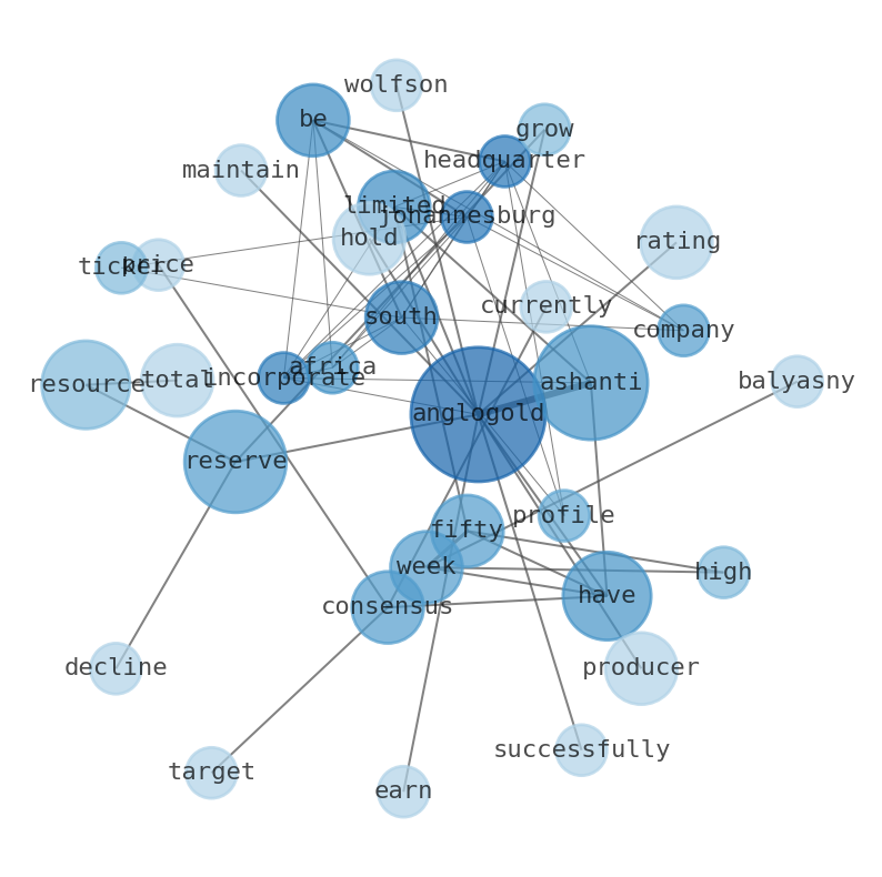 This document will help you to evaluate AngloGold Ashanti without reading an infinite amount of sources. Relying only on stock quotes or prices to make investment decisions is a mistake. Analyzing and observing stock charts, highs and lows and other numerical data does not allow to evaluate the real value of a company. Stock quotes and prices are the result of underlying characteristics of a company and of events and news happening around them. For this reason, investing must be based on information, not numbers. As a solution, we programmed an artificial intelligence that reads the whole internet and the uses natural language processing and vectorizers to summarize the information. Usually, the AI reads several hundred pages and summarize it to a short document. This document presents our results. We found that the most common words in the internet about AngloGold Ashanti are: AngloGold, Ashanti, reserve, Limited, South, fiftytwo, week, …