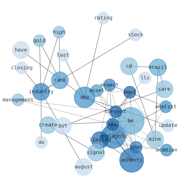 Are looking for the most relevant information about AngloGold Ashanti? Investor spend a lot of time searching for information to make investment decisions in AngloGold Ashanti. This task is often burdensome and consumes huge amounts of free time. It also leads to mistakes due to fatigue and bounded rationality. As a solution, we programmed an artificial intelligence that reads the whole internet and the uses natural language processing and vectorizers to summarize the information. Usually, the AI reads several hundred pages and summarize it to a short document. This document presents our results. We found that the most common words in the internet about AngloGold Ashanti are: Ashanti, AngloGold, Limited, August, industry, rank, create, and the most common words in the summary are: anglogold, ashanti, stock, market, job, gold, price, . One of the sentences in the summary was: Acadian Asset Management LLC owns 0.05% of the company. Other searches …