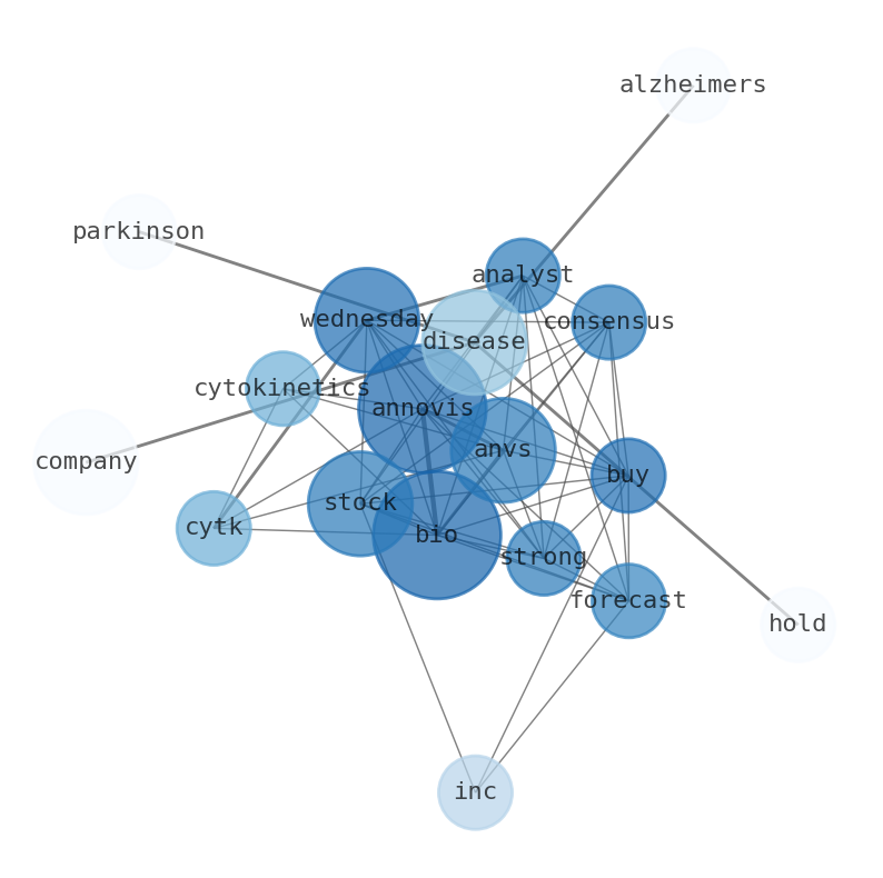 Cytokinetics (CYTK) +83% to $83.44 on Wednesday, Annovis Bio (ANVS) +28% to.19.62 on Wednesday. Analyst Consensus: Strong Buy Stock Forecasts. Annovis Bio Inc is a clinical-stage pharmaceutical company focused on developing and commercializing drugs for the treatment of Parkinsons and Alzheimers diseases and other neurodegenerative diseases. Company to hold R&D webcast on Thursday, April 20 th to review ongoing clinical programs. Annovis Bio (ANVS) Stock Surges 38% in a month: Heres Why