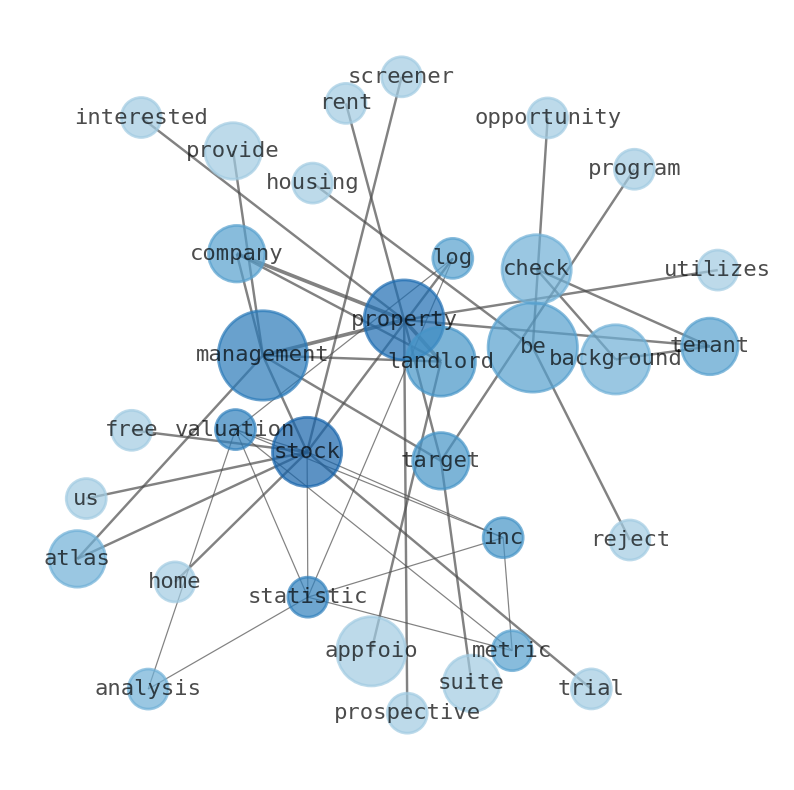 Are looking for the most relevant information about AppFolio? Investor spend a lot of time searching for information to make investment decisions in AppFolio. This task is often burdensome and consumes huge amounts of free time. It also leads to mistakes due to fatigue and bounded rationality. As a solution, we programmed an artificial intelligence that reads the whole internet and the uses natural language processing and vectorizers to summarize the information. Usually, the AI reads several hundred pages and summarize it to a short document. This document presents our results. We found that the most common words in the internet about AppFolio are: AppFolio, AppFoio, management, property, background, check, APPF, and the most common words in the summary are: appfolio, property, check, management, bloomberg, background, market, . One of the sentences in the summary was: AppFoio provides cloud business management solutions for the real estate industry. Other searches related to this term that the AI found were: stockmarketlive, livestock, stockmarketforbeginners, thestockmarket, stockmarkettoday, stockmarkettrading, stockmarketstocks, todaystockmarket, thestockmarket, marketnews, stockmarketnews, whatisstockmarket, usstockmarket, stockmarketopen. #appfolio #property #check #management #bloomberg #background #market.