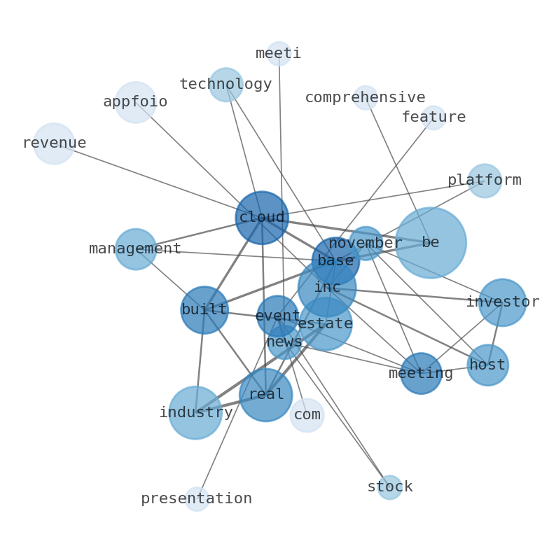 This document will help you to evaluate AppFolio without reading an infinite amount of sources. Relying only on stock quotes or prices to make investment decisions is a mistake. Analyzing and observing stock charts, highs and lows and other numerical data does not allow to evaluate the real value of a company. Stock quotes and prices are the result of underlying characteristics of a company and of events and news happening around them. For this reason, investing must be based on information, not numbers. As a solution, we programmed an artificial intelligence that reads the whole internet and the uses natural language processing and vectorizers to summarize the information. Usually, the AI reads several hundred pages and summarize it to a short document. This document presents our results. We found that the most common words in the internet about AppFolio are: AppFolio, Inc, real, estate, industry, business, cloudbased, and the …