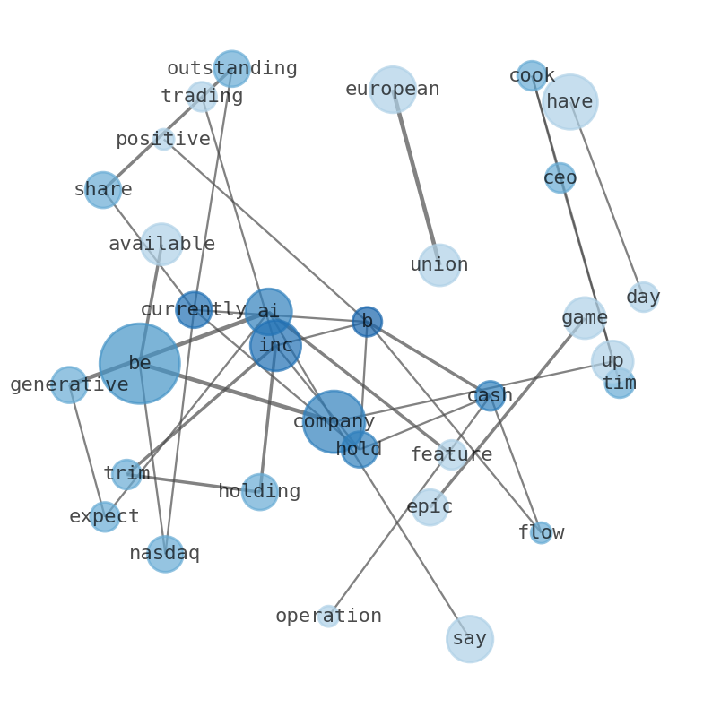 How much time have you spent trying to decide whether investing in Apple? Many investors start with the dream of being free. They expect to find on the stock market an option to have time to develop their own interests and hobbies. That is, a way to escape a 9 to 5 job. However, investment is complex and investors end up spending whole days (and nights) trying to figure out which the right stock to invest is. The dream of stock investing becomes the nightmare of facing infinity amounts of information. As a solution, we programmed an artificial intelligence that reads the whole internet and the uses natural language processing and vectorizers to summarize the information. Usually, the AI reads several hundred pages and summarize it to a short document. This document presents our results. We found that the most common words in the internet about Apple are: Apple, company, …
