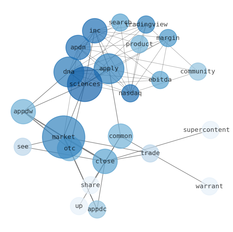Are looking for the most relevant information about Applied DNA Sciences? Investor spend a lot of time searching for information to make investment decisions in Applied DNA Sciences. This task is often burdensome and consumes huge amounts of free time. It also leads to mistakes due to fatigue and bounded rationality. As a solution, we programmed an artificial intelligence that reads the whole internet and the uses natural language processing and vectorizers to summarize the information. Usually, the AI reads several hundred pages and summarize it to a short document. This document presents our results. We found that the most common words in the internet about Applied DNA Sciences are: Markets, Applied, DNA, OTC, close, Common, EBITDA, and the most common words in the summary are: dna, market, science, franklin, research, news, new, . One of the sentences in the summary was: 2 001-36745 02/01/2024.. Other searches related to this …