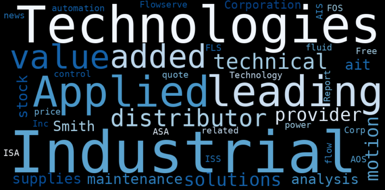 Are looking for the most relevant information about Applied Industrial Technologies? Investor spend a lot of time searching for information to make investment decisions in Applied Industrial Technologies. This task is often burdensome and consumes huge amounts of free time. It also leads to mistakes due to fatigue and bounded rationality. As a solution, we programmed an artificial intelligence that reads the whole internet and the uses natural language processing and vectorizers to summarize the information. Usually, the AI reads several hundred pages and summarize it to a short document. This document presents our results. We found that the most common words in the internet about Applied Industrial Technologies are: Applied, Industrial, Technologies, lead, valueadded, distributor, technical, and the most common words in the summary are: technology, industrial, apply, job, news, overview, solution, . One of the sentences in the summary was: (ait) stock price, quote, news & analysis. Other …
