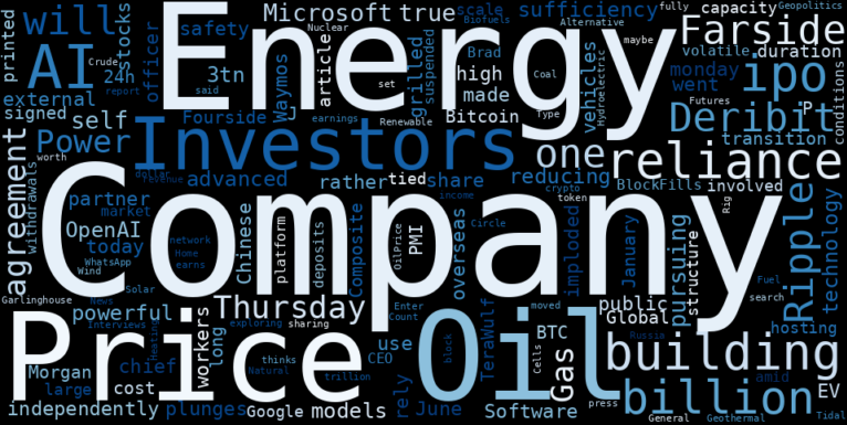 Microsoft is pursuing “true self-sufficiency” in AI by building its own powerful models and reducing its reliance on OpenAI. The $3tn company is building its most advanced technology independently, rather than rely on an external partner. Software company monday.com plunges 22% today, -82% from high, -50% from ipo price, into our imploded stocks. The company went public in June 2021 at an IPO price of $155 a share. Waymos chief safety officer grilled over use of Chinese-made vehicles and reliance on overseas workers. The EV transition has cost the company $32.5 billion. Bitcoin BTC (24h) $65,587.30 -1.16% In this article Farside Investors Farsides Investors Fourside Investors, Company Deribit Deribits, Company. J.P.Morgan Global Composite PMI for January printed 52.5. TeraWulf signed long-duration AI hosting agreements tied to large-scale capacity, with Google involved in the structure. BlockFills has suspended deposits and withdrawals on its platform amid volatile market conditions. Ripple CEO Brad Garlinghouse thinks crypto will have its own trillion-dollar company. He said Ripple could be one, and maybe there will be more than one. Russia moved to fully block WhatsApp on Thursday. Company set to report earnings on Thursday. Company earns income through a revenue sharing agreement with Circle. Company is exploring a token for the network that could be worth $12 billion. OilPrice.com Type your search and press Enter Home Oil Prices Oil Futures Rig Count Energy Energy-General Oil Prices Crude Oil Heating Oil Gas Prices Natural Gas Coal Company News Interviews Geopolitics Alternative Energy Nuclear Power Solar Energy Hydroelectric Renewable Energy Geothermal Energy Wind Power Fuel Cells Tidal Energy Biofuels.