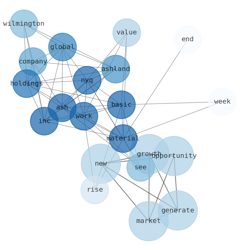 This document will help you to evaluate Ashland Global Holdings without reading an infinite amount of sources. Relying only on stock quotes or prices to make investment decisions is a mistake. Analyzing and observing stock charts, highs and lows and other numerical data does not allow to evaluate the real value of a company. Stock quotes and prices are the result of underlying characteristics of a company and of events and news happening around them. For this reason, investing must be based on information, not numbers. As a solution, we programmed an artificial intelligence that reads the whole internet and the uses natural language processing and vectorizers to summarize the information. Usually, the AI reads several hundred pages and summarize it to a short document. This document presents our results. We found that the most common words in the internet about Ashland Global Holdings are: growth, opportunity, Wilmington, company, Ashland, …