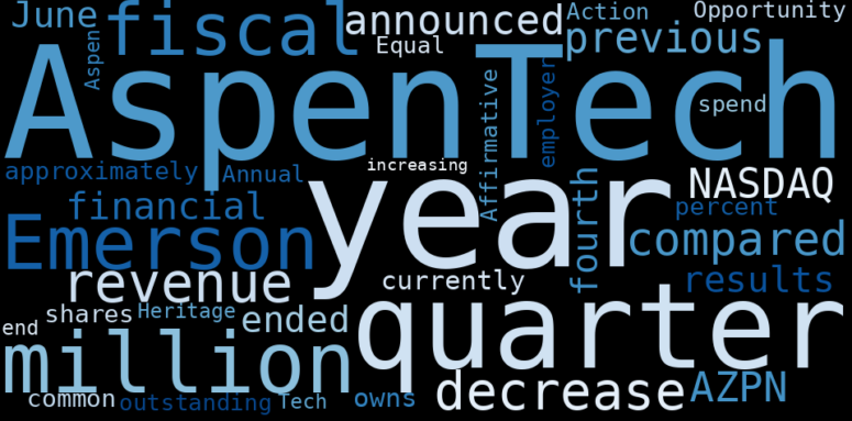In 2022, AspenTechs revenue was $405.30 million, a decrease of -42.87% compared to the previous years $709.38. Emerson and AspenTech (NASDAQ: AZPN) announced financial results for its fourth quarter and fiscal year 2023, ended June 30, 2023. Emerson currently owns approximately 56 percent of the common shares outstanding of AspenTech. AspenTech is an Equal Opportunity/Affirmative Action employer. Annual spend for Heritage Aspen Tech was $730.9 million at the end of fiscal 2023, increasing 8.5% year over year and 2.7% quarter over quarter.